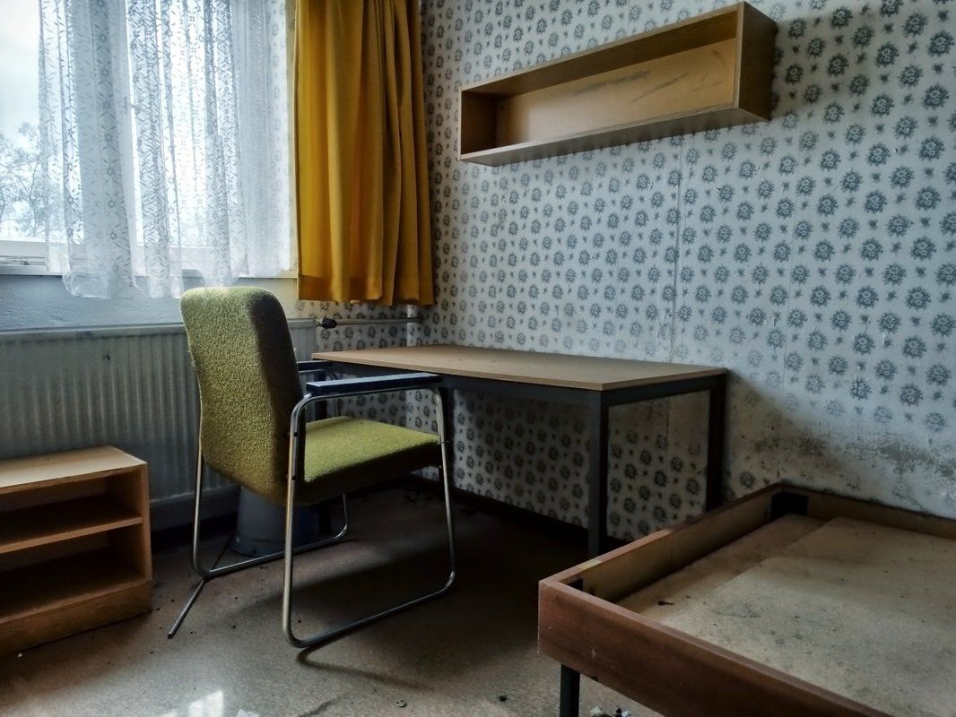 Anfang 2020 besuchte ich das Gebäude erneut. Das alte Wohnheim ist weiterhin verlassen. Doch Grünschnitt, neue Farbe und neue Verbretterungen signalisierten, dass auf dem Gelände Bewegung herrscht. In den Gebäuden hat der Vandalismus zugenommen. Auch viele Graffitis zieren die Wände und Möbelstücke.